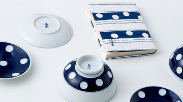 木版画に欠かせない色彩の一つ「藍色」を塗り、一つ一つ水玉模様が施された器は日本各地で親しまれ、数多く作られてきました。